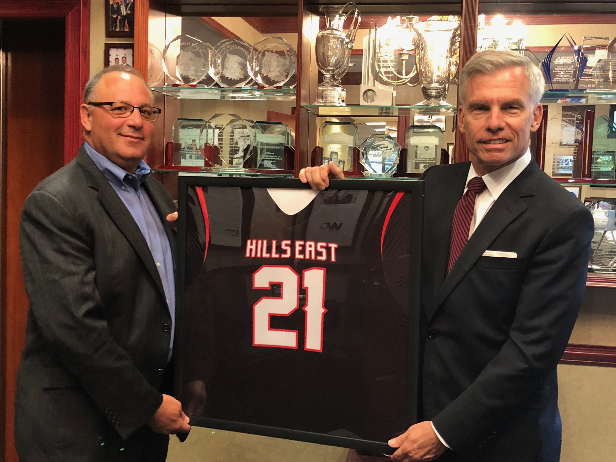 The numbers, the first to be retired in Hills history, were retired at the end-of-season Hills lacrosse awards dinner. Enners wore No. 26 and Metzger wore No. 21.