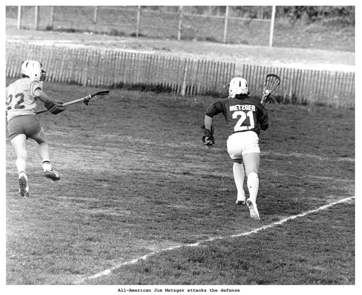 In high school, Metzger was a stud in all walks of athletics, also playing football and basketball, but he achieved the most on the lacrosse field. He set school records for points in a season and assists in a game, season and career. He was the only high school athlete selected to both the North-South All-Star football and lacrosse games as a senior. Metzger started every game in his 3 year varsity football career and led his team in scoring in '74, '75, '76 and rushing in '75 and '76. He scored 27 touchdowns, 170 points and rushed for over 2,000 yards. He was recruited to play football by Syracuse, Colgate and Cornell and recruited to play lacrosse by Virginia, Army, Navy, Cornell and Hofstra.